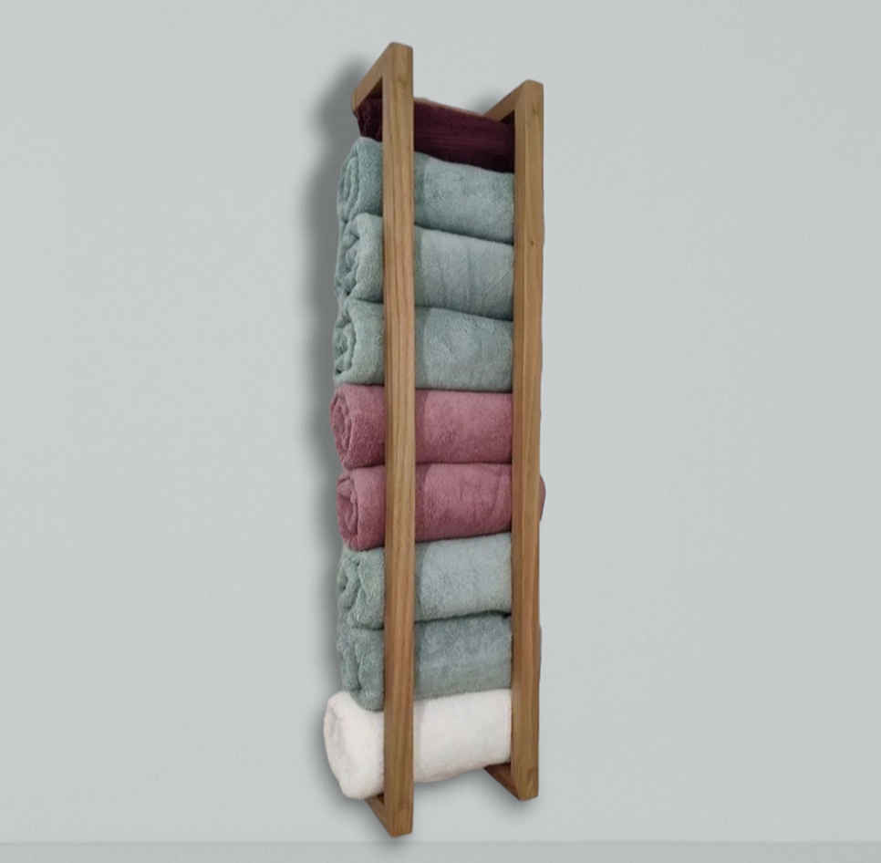 Wooden wall Mounted towel Rack. Towel Shelf.