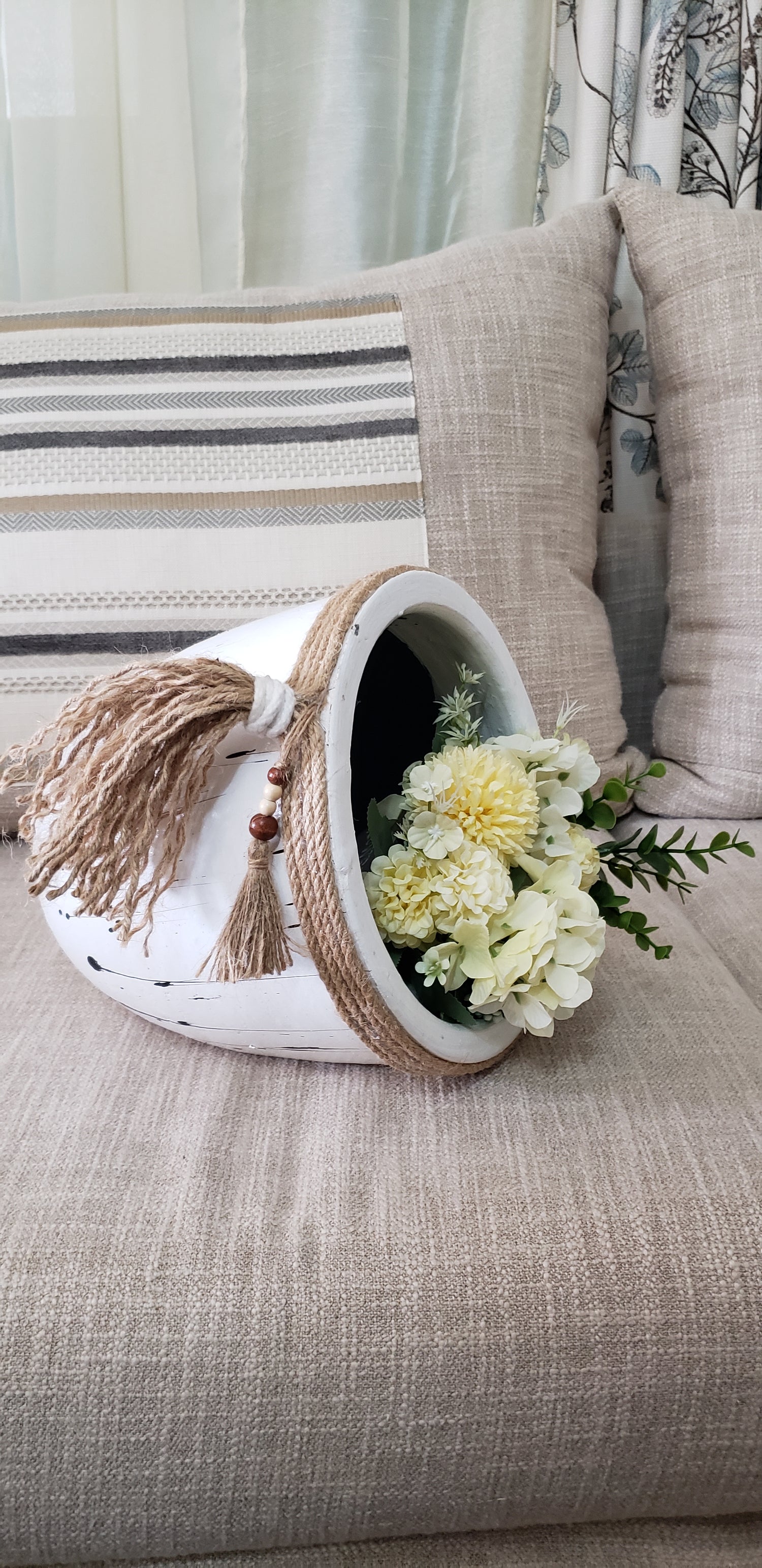 Large Boho Unique Custom Handpainted Vase with Tassels