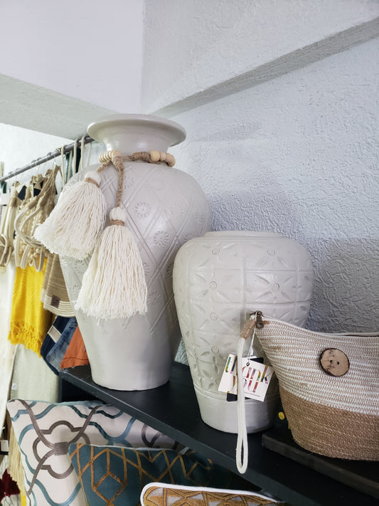 Large Boho Unique Custom Handpainted Vase with Tassels