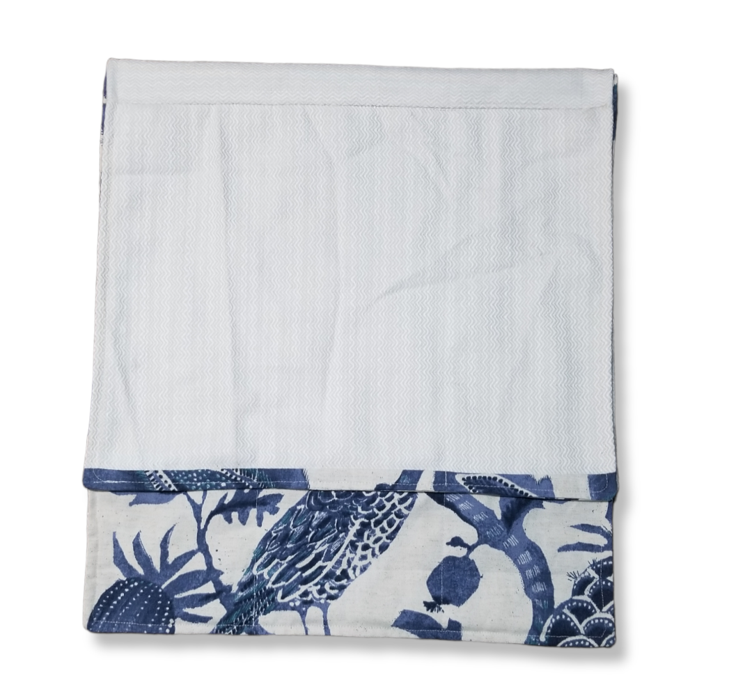 Our Caribbean Nightingales Designer Bed Runner/Scarf is the perfect way to add a touch of luxury to any bedroom. This reversible king bed scarf features beautiful blue Richloom fabric and is perfect for any décor. The intricate and delicate pattern makes this bed runner/scarf a truly unique and stylish piece. Add elegance and sophistication to your bedroom with this handmade designer bed runner/scarf.