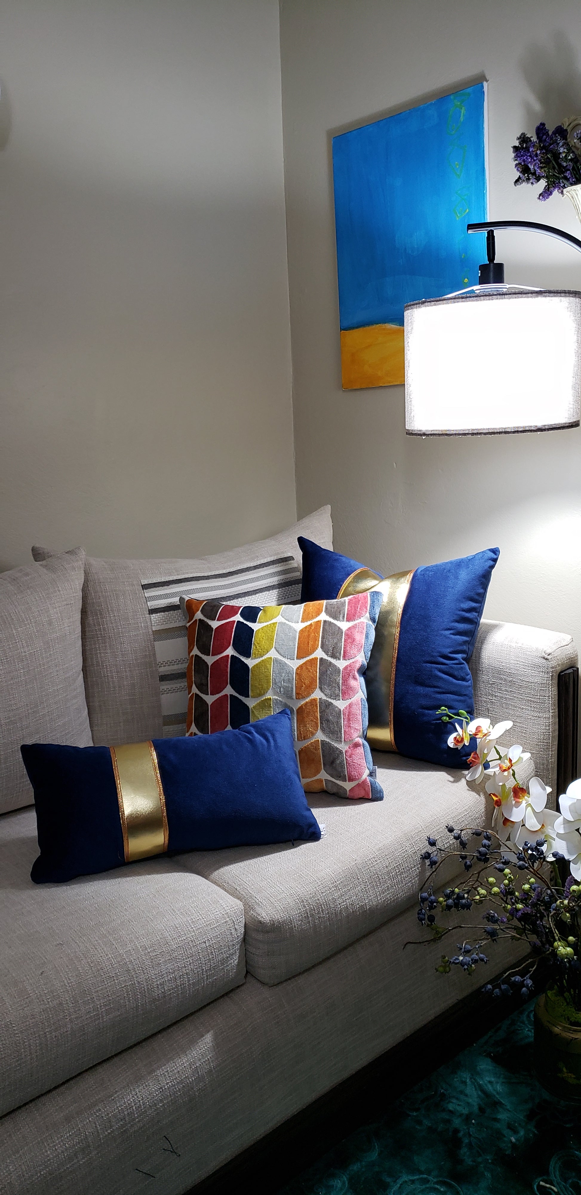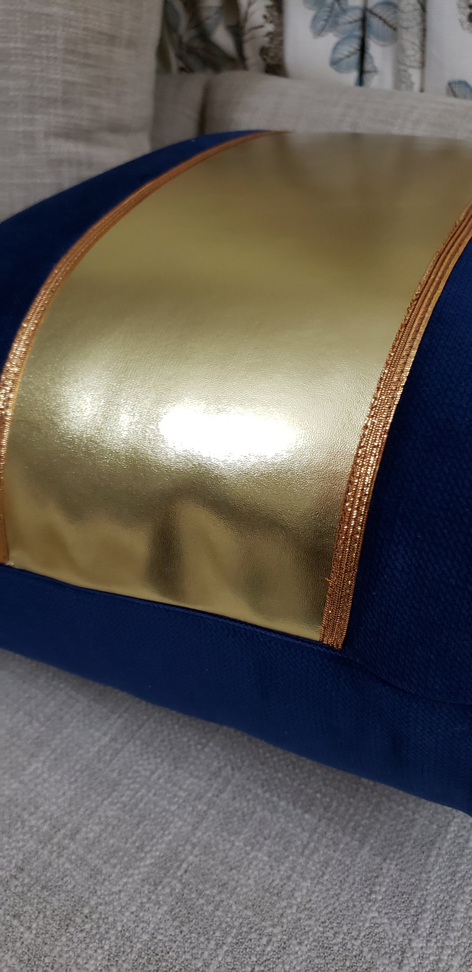 Introducing the Royal Deluxe Luxury Lumbar Designer Decorative Pillow - a regal piece of home décor with a timeless aesthetic. Handcrafted by Fiona Kimberly with high-end microfiber, this unique pillow features an exquisite royal blue and gold palette, designed to impress with its exclusive embellishments. Its invisible zipper ensures that its beauty is retained, creating an elegantly luxurious addition to any home.