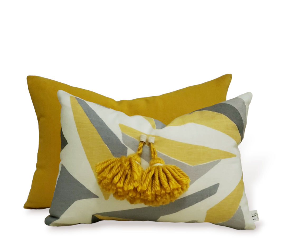Experience luxury with this stunning throw pillow cover! Its Thom Filicia Kravet fabric, gold tassel accent, and invisible zipper make it the perfect addition to any room. Add a touch of sophistication and elegance to your decor today!